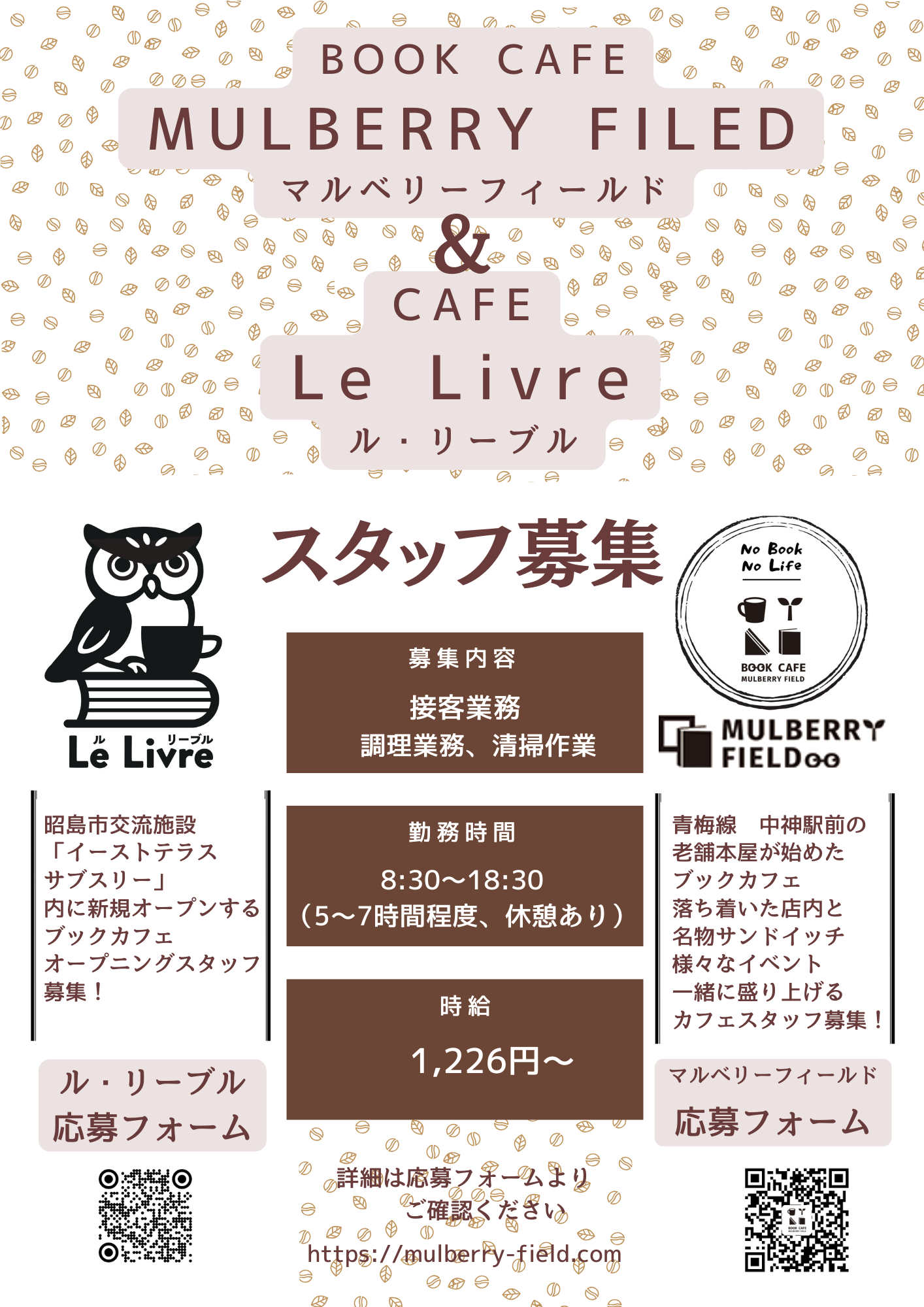 マルベリーフィールドのスタッフも同時に募集中。